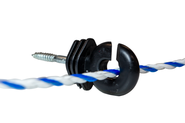 Wood Post Jumbo Ring Insulator, White or Black Warranty - 2 Year Product Code: 880 0013-006 (white) Product Code: 880 0013-005 (black) Find a stockist Product features Suits poli wires, ropes and braid up to 10 mm Excellent arcing protection UV resistant Find a stockist